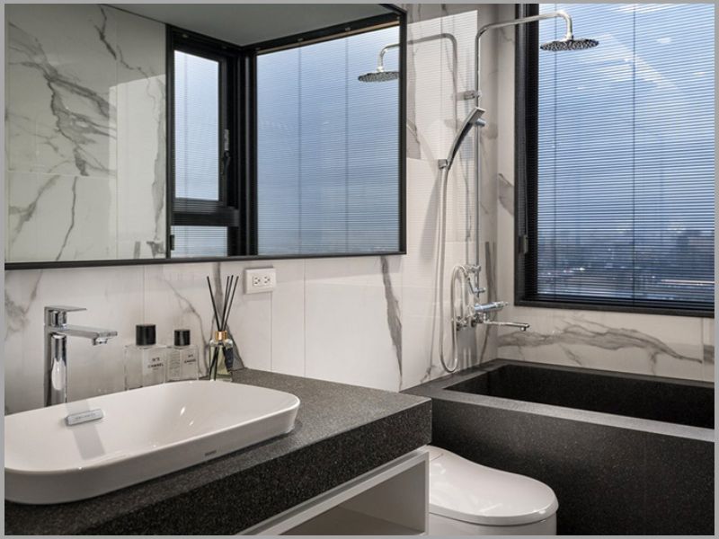 Phòng tắm hiện đại đã phá bỏ ranh giới với phòng ngủ. Thậm chí không có tường ngăn liên kết phòng tắm với tủ quần áo và phòng thay đồ không có cửa cũng rất thịnh hành