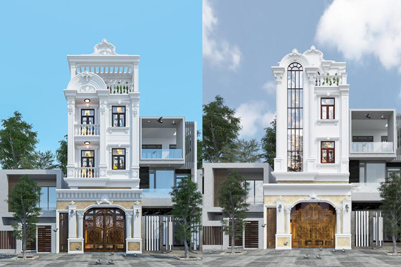 + Hai là: thiết kế nhà phố kiểu cổ điển sử dụng rất nhiều chi tiết trang trí cầu kì và công phu