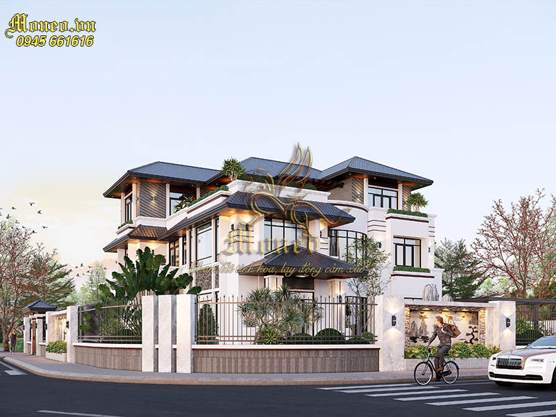 Mẫu biệt thự 250m2 hiện đại 2 mặt tiền phải đáp ứng công năng sử dụng ánh sáng và thẩm mỹ. Đối với các mảnh đất có hình tứ giác, ngũ giác ... việc thiết kế, xây dựng sẽ gặp nhiều khó khăn hơn. Với mẫu biệt thự 250m2 này sở hữu đến 2 mặt tiền nên tạo ra được sự khác biệt để tránh nhàm chán. Đồng thời bố trí mặt bên là mặt tiền chủ đạo hoặc tận dụng cả hai mặt tiền.