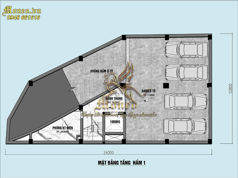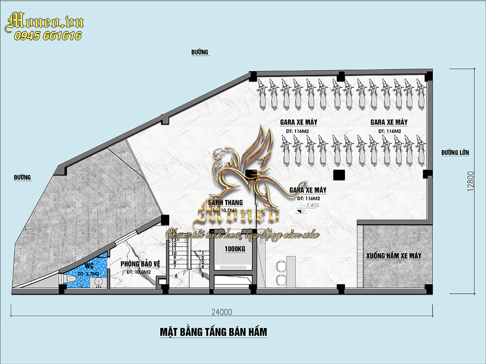 Tầng bán hầm được thiết kế không quá sâu, được thiết kế với chức năng để xe và các phương tiện