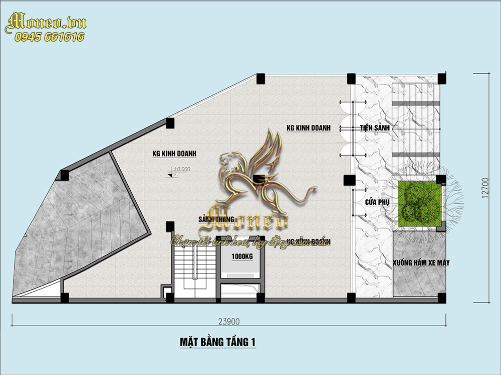 -Tầng 1:Kinh doanh, tiền sảnh, sảnh phụ