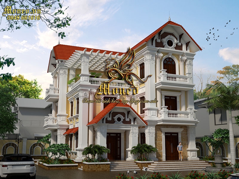 Thông số công năng, diện tích của mẫu thiết kế biệt thự 3 tầng kiểu châu âu bao gồm: