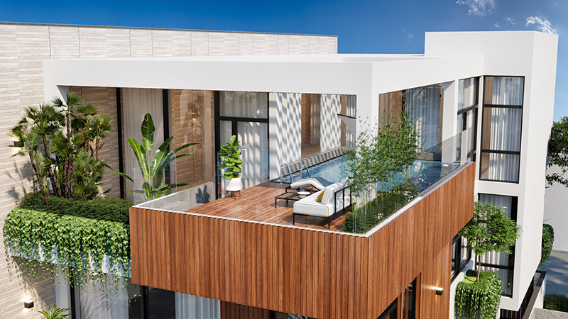 Giới thiệu tổng quát về biệt thự có hồ bơi trên sân thượng
