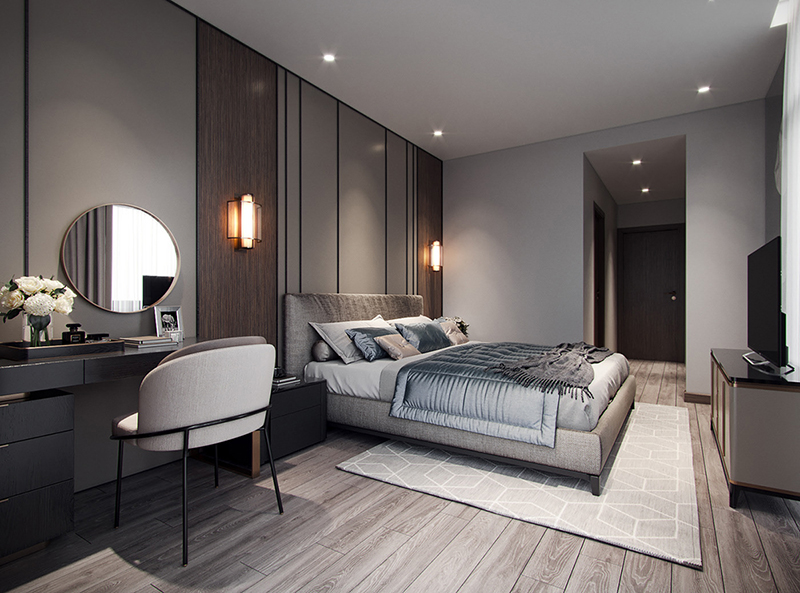 Không gian nội thất phòng ngủ mẫu biệt thự sang trọng hiện đại 4 tầng