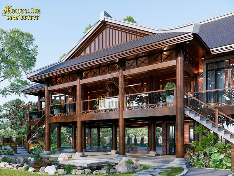 + Thiết kế nhà sàn bằng bê tông giả gỗ: Thể hiện được vẻ đẹp truyền thống, đậm đà bản sắc dân tộc