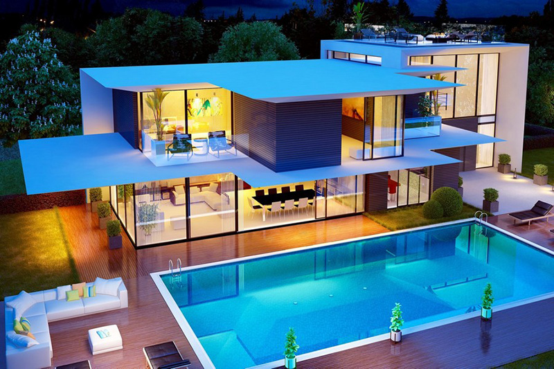 3. Vẻ đẹp ấn tượng của thiết kế villa 2 tầng hiện đại sang trọng có bể bơi. Thiết kế kiểu biệt thự nghỉ dưỡng cao cấp như thế này có được trong những công trình nhà 2 tầng hiện đại đầy mới mẻ. Cùng với sự khỏe khoắn, phóng khoáng trong tổng thể không gian kiến trúc, kết hợp với việc sử dụng vật liệu hiện đại, mới mẻ.... thì mẫu thiết kế nhà villa 2 tầng hiện đại sang trọng đem lại sự hoàn hảo, tối ưu nhất cho tổng thể không gian sống. Hệ thống bể bơi xung quanh tạo nên giá trị, sự mới mẻ và đẳng cấp cho không gian ngoại thất của ngôi nhà.