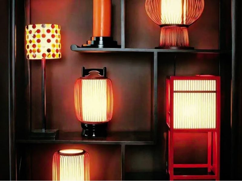 Đèn trang trí trong phong cách Indochine thường được làm bằng các vật liệu tự nhiên như gỗ, tre, giấy gió, kết hợp với các họa tiết truyền thống, những đèn này sử dụng bóng đèn có ánh sáng vàng ấm, tạo nên không gian ấm cúng.