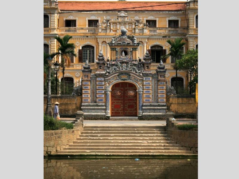 Trang trí trên mọi bộ phận của công trình. Ngoài các đề tài truyền thống, còn có các đề tài từ Phương Tây. Màu saswcs đa dạng, rực rỡ.