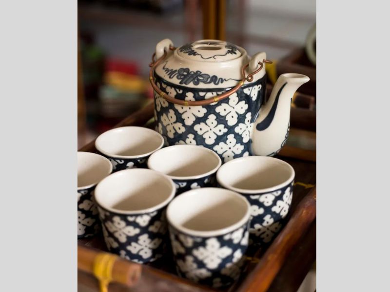 Màu sắc gốm sứ tươi sáng và đa dạng, và thường được trang trí với lớp men sáng bóng. Sản phẩm gốm đĩa trang trí, chậu cây cảnh, bộ ấm trà, ly tách,vv.. được chế tác thủ công bởi các nghệ nhân địa phương.
