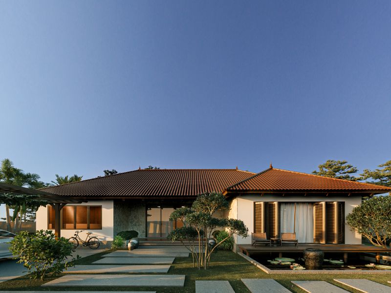 Mái nhà thường làm đua ra để chống hắt mưa nhưng vẫn đảm bảo lấy sáng