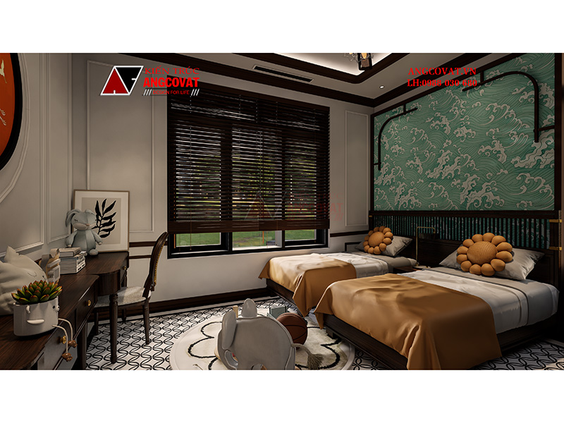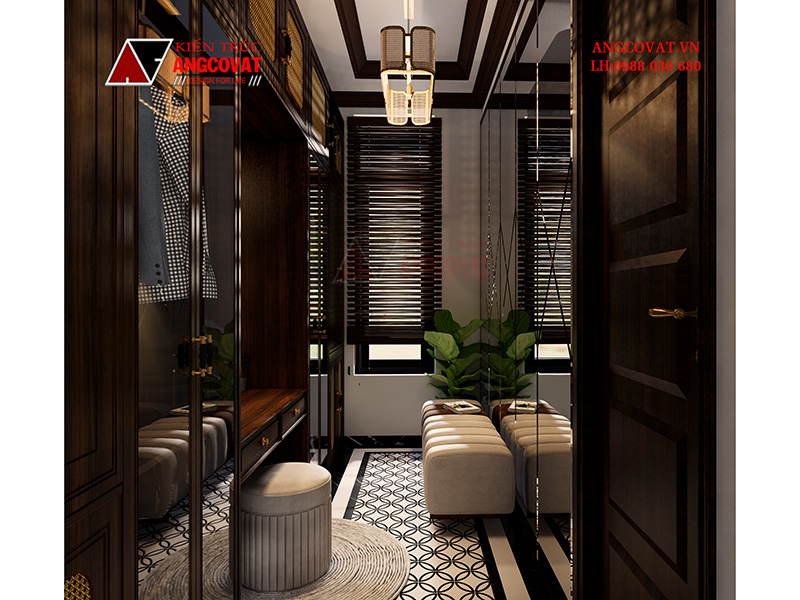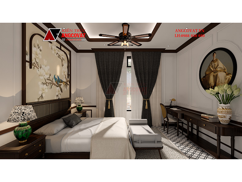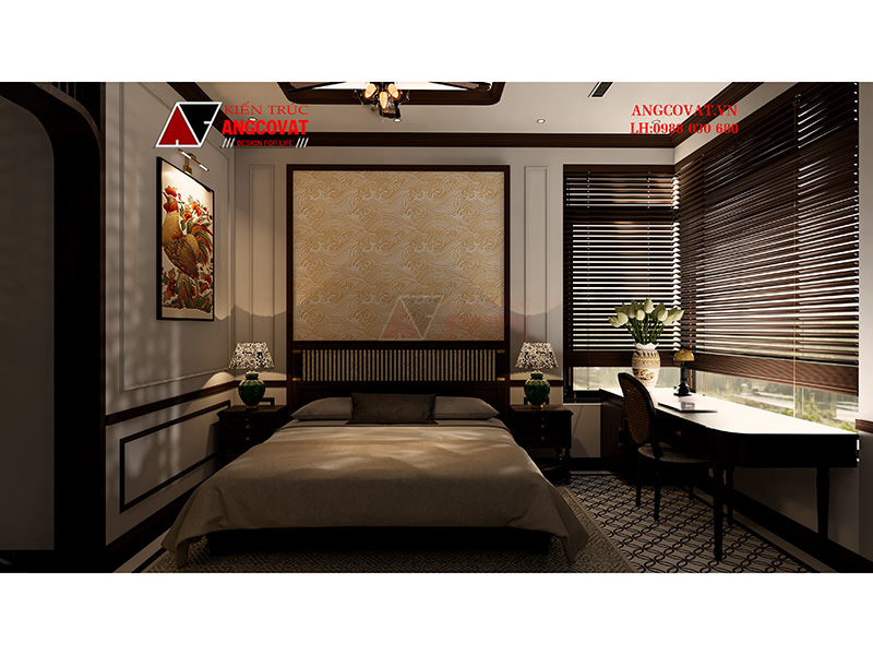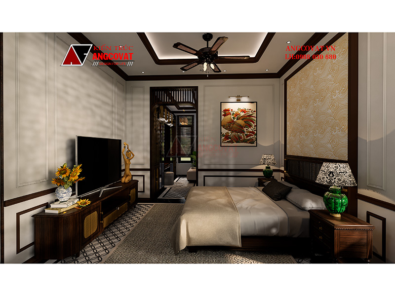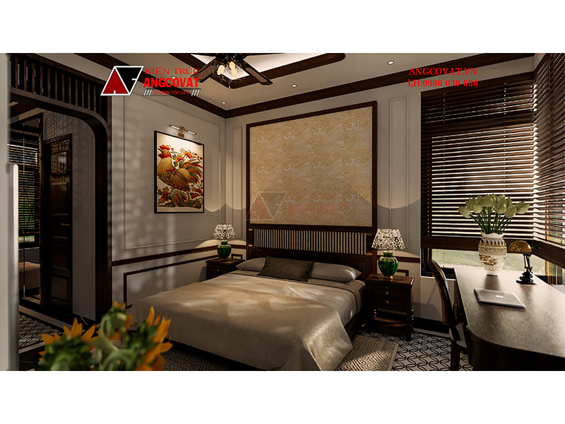 Màu sắc phòng ngủ Indochine thường sử dụng các tông màu trầm, như màu nâu, màu gỗ cho cảm giác tĩnh lặng và sang trọng