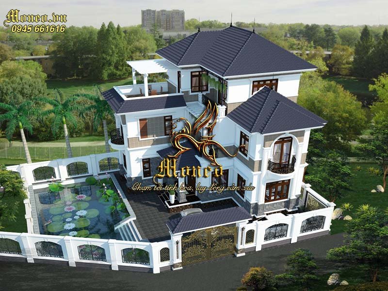 Hình ảnh phối cảnh: Mẫu biệt thự 3 tầng mái nhật tân cổ điển