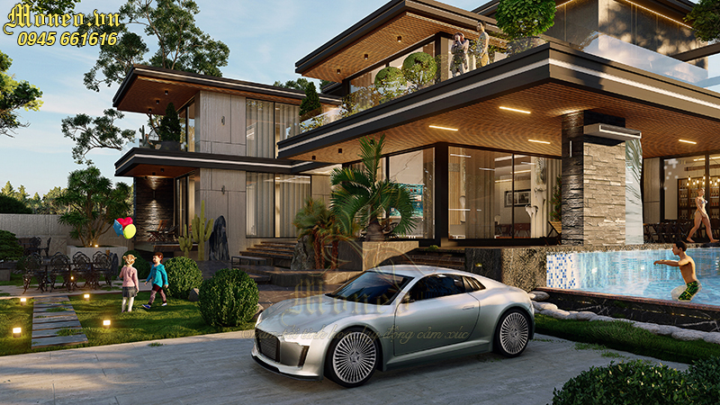 Thiết kế biệt thự 2 tầng siêu hiện đại 400m2 5 phòng ngủ được thiết kế với không gian kiến trúc hoành tráng